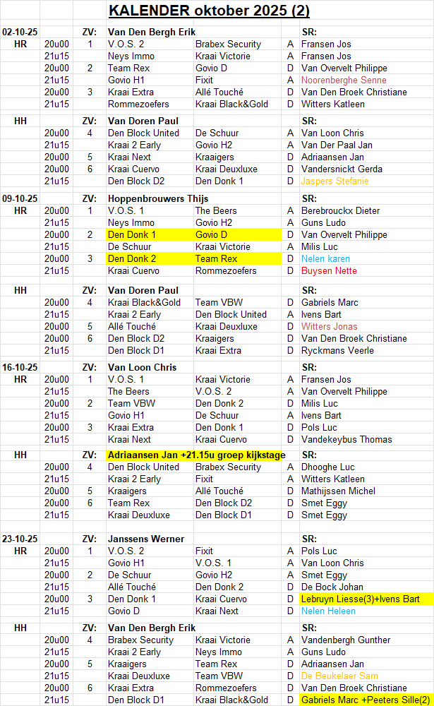 De lijst met scheidsrechters is te verkrijgen via Chris Van Loon of via ons contactformulier.
